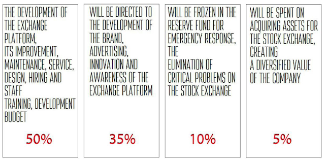 Distribution tokens A total of 10 million ZXE tokens will be distributed for Pre-sales while the Initial Exchange Offering itself will be allocated 40 million tokens, 50 million for the Foundation, 20 million for bounty and airdrop programs, 10 million promos and 20 Team million tokens to be allocatedFund distribution